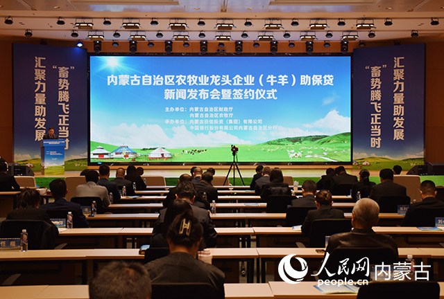 内蒙古自治区农牧业龙头企业(牛羊)助保贷新闻发布会暨签约仪式现场。实习生 拓宇婷摄