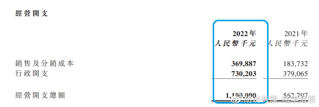 这其中销售及分销成本3.69亿元,比2021的1.84亿翻了一倍;行政开支7.3亿元,同比也是将近翻倍。