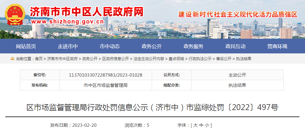 中国质量新闻网讯 近日,济南市市中区市场监督管理局发布行政处罚信息公示 (济市中)市监综处罚〔2022〕497号。涉及山东庆丰牧业科技有限公司发布违法广告案。