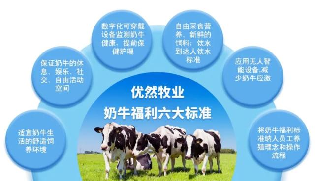 联合国粮农组织驻中国代表马文森认为,动物福利与食品安全、健康、环境、生态等系统密切相关,它是可持续发展道路组成的部分之一。优然牧业很早就开始关注动物福利建设,为保证奶牛健康长寿,专门研究建立了奶牛福利六大标准,包括“适宜奶牛生活的舒适饲养环境”、“保证奶牛的休息、娱乐、社交、自由活动空间”、“数字化可穿戴设备监测奶牛健康,提前保健护理”、“自由采食营养、新鲜的饲料;饮水到达人饮水标准”、“应用无人智能设备,减少奶牛应激”以及“将奶牛福利标准纳入员工养殖理念和操作流程”,形成了一套完整的奶牛福利管理体系,全面提升奶牛福利。凭借在奶牛福利方面的突出成绩,今年9月份,优然牧业在第六届中国动物健康与食品安全大会上荣获“动物福利科学促进奖”,获得行业高度认可。
