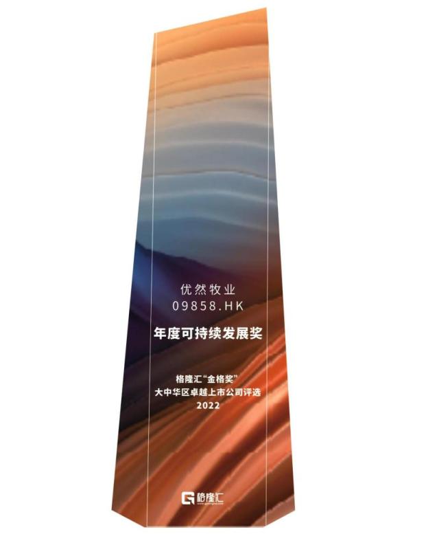 12月16日,在“金格奖”上市公司颁奖典礼上,优然牧业凭借“从一棵草到一杯奶”全产业链绿色循环可持续发展模式,荣膺本年度“年度可持续发展奖”。
